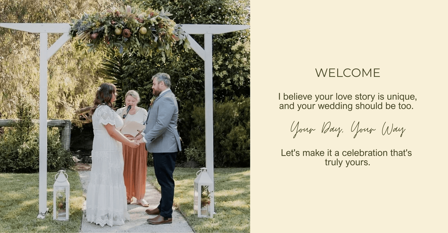 Thank you for visiting my page. It is a true honor to be considered for such a meaningful role in your life. My goal as a Melbourne Registered Civil Celebrant is to craft a beautiful, heartfelt ceremony that tells your unique story and creates a moment you will cherish forever.