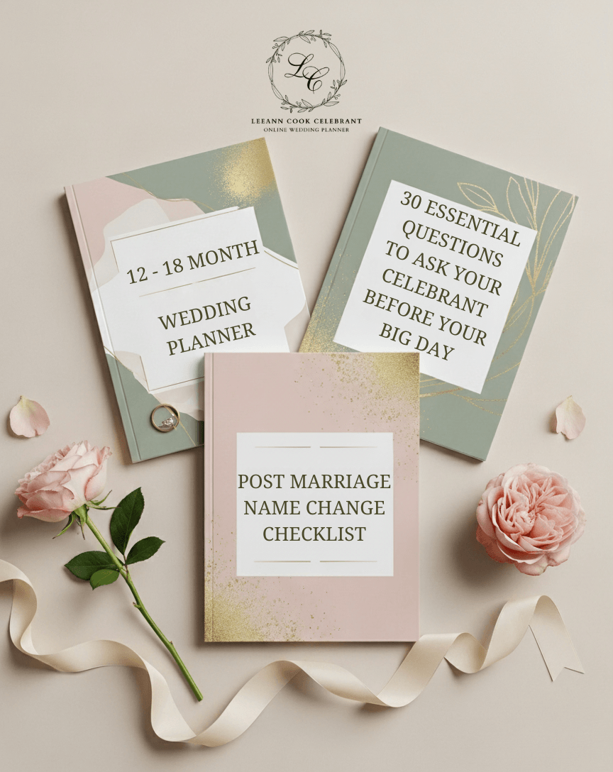 Planning a wedding is an incredible adventure, and we're here to help you every step of the way. Leeann Cook Celebrant, a trusted Melbourne marriage celebrant, offers a suite of free, downloadable wedding planning guides designed to help you bring your dream day to life.