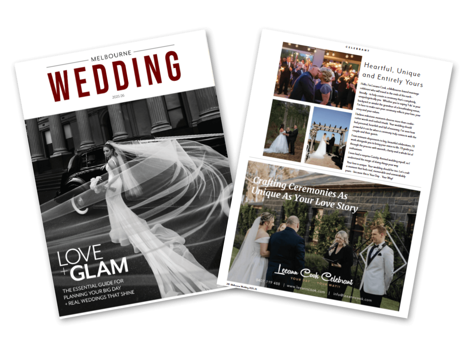 It's a wonderful honor to be showcased in a publication that is a trusted resource for couples planning their perfect Melbourne wedding. This feature by industry tastemakers is a true testament to my dedication, passion, and commitment to creating unforgettable ceremonies.