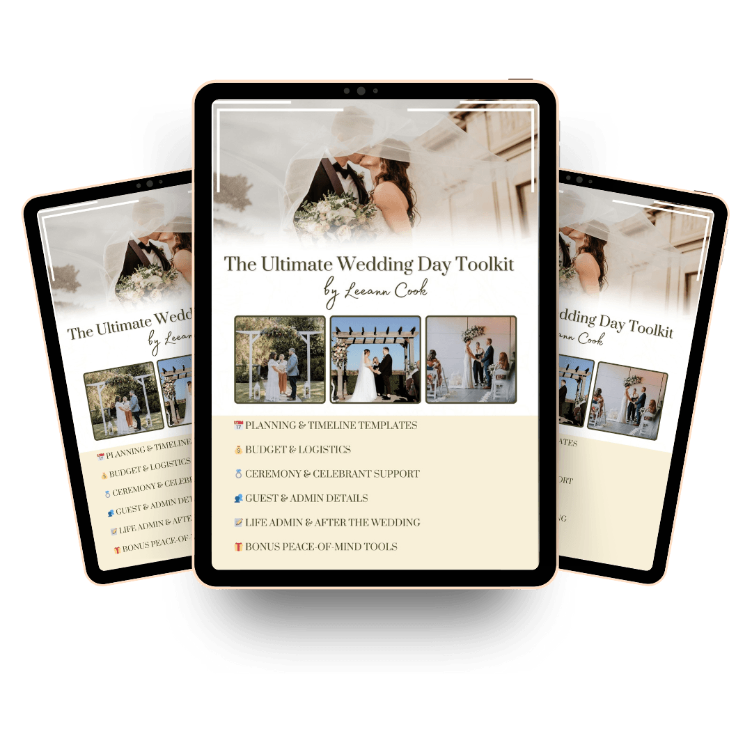 Whether you’re just beginning your planning journey or putting the final touches on your ceremony, this all-in-one toolkit is packed with practical resources, step-by-step checklists, and expert tips to help you plan a smooth, stress-free, and unforgettable wedding day.